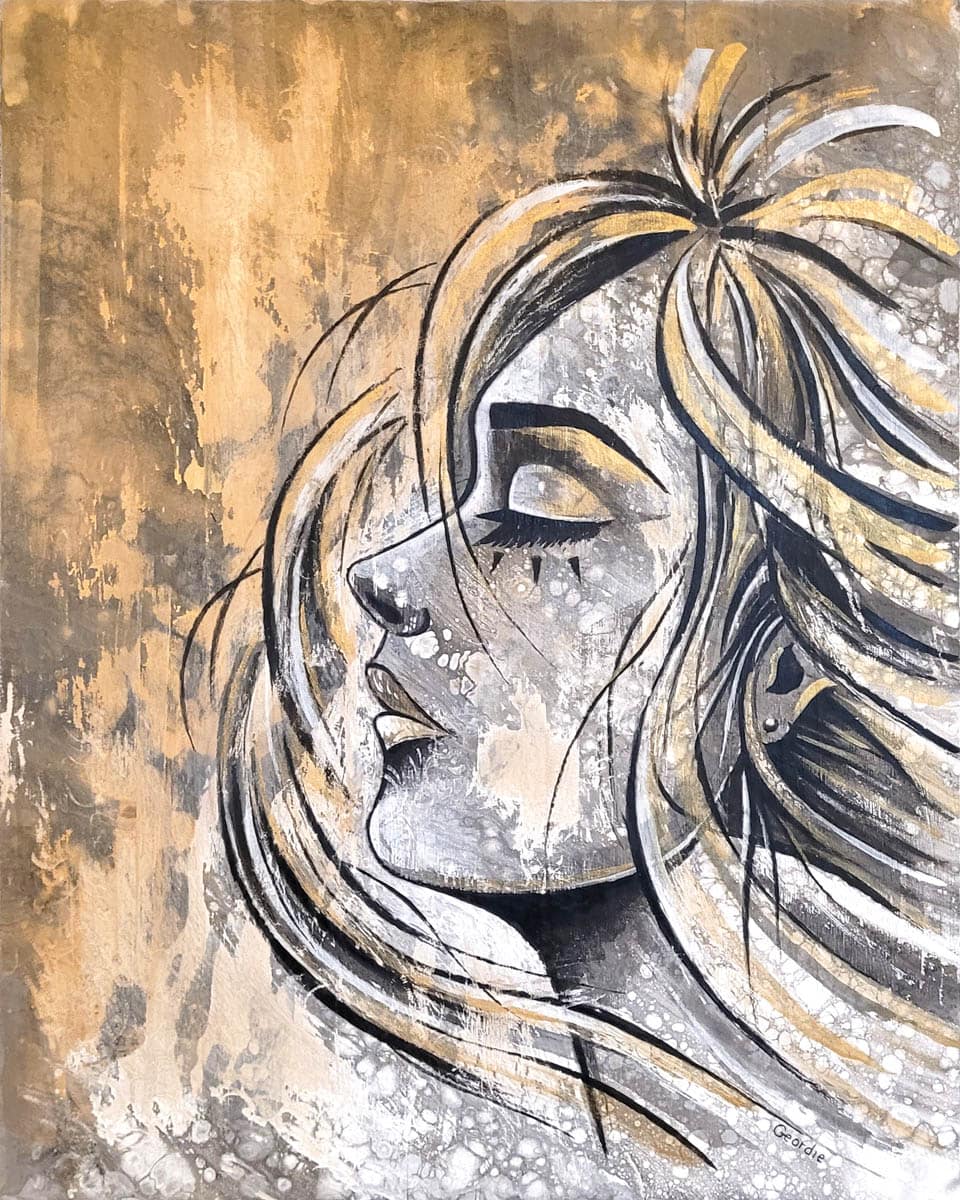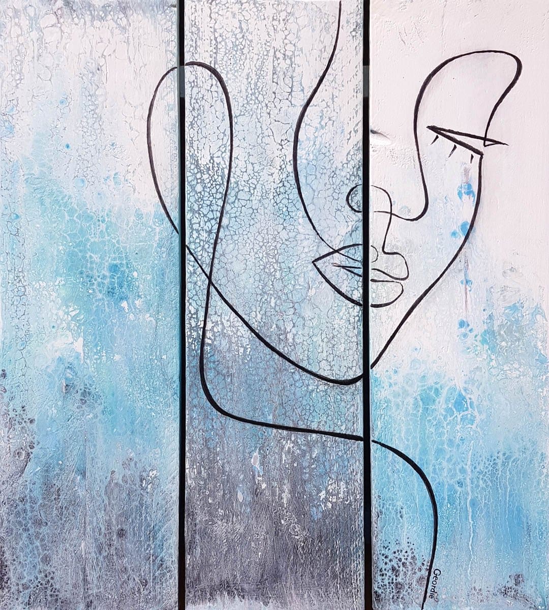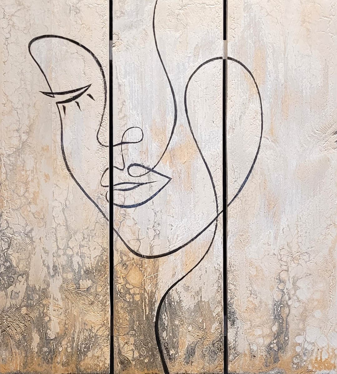Ancien et nouveau A jamais rejoints Dans le même mouvement Qui jamais ne s’éloignent Jamais ne se rejoignent Dissemblables Indissociables Et pourtant Toujours dans le même mouvement De la vie De l’envie de se laisser griser De l’envie de retrouver Ce qui était et est encore Sans désaccord Technique mixte- 120cm x 60cm - Sur toile - 2018