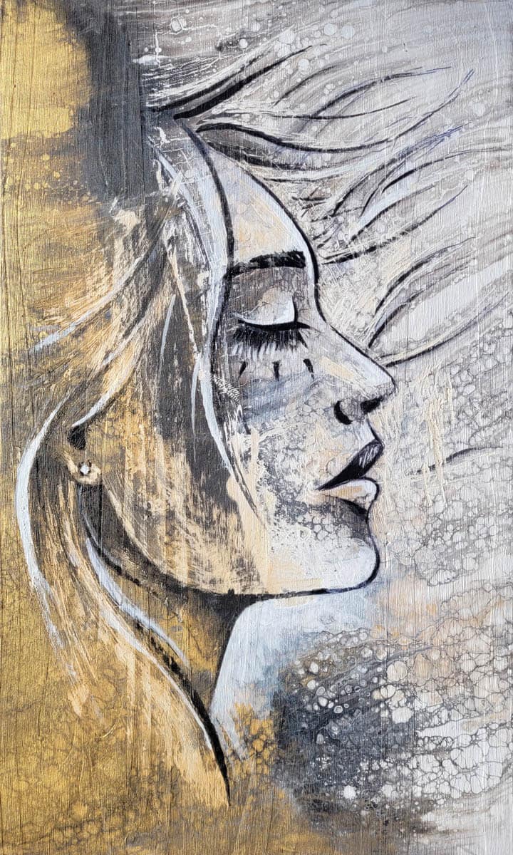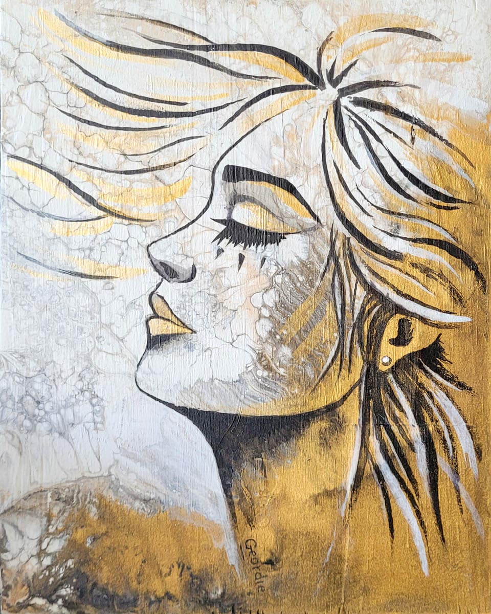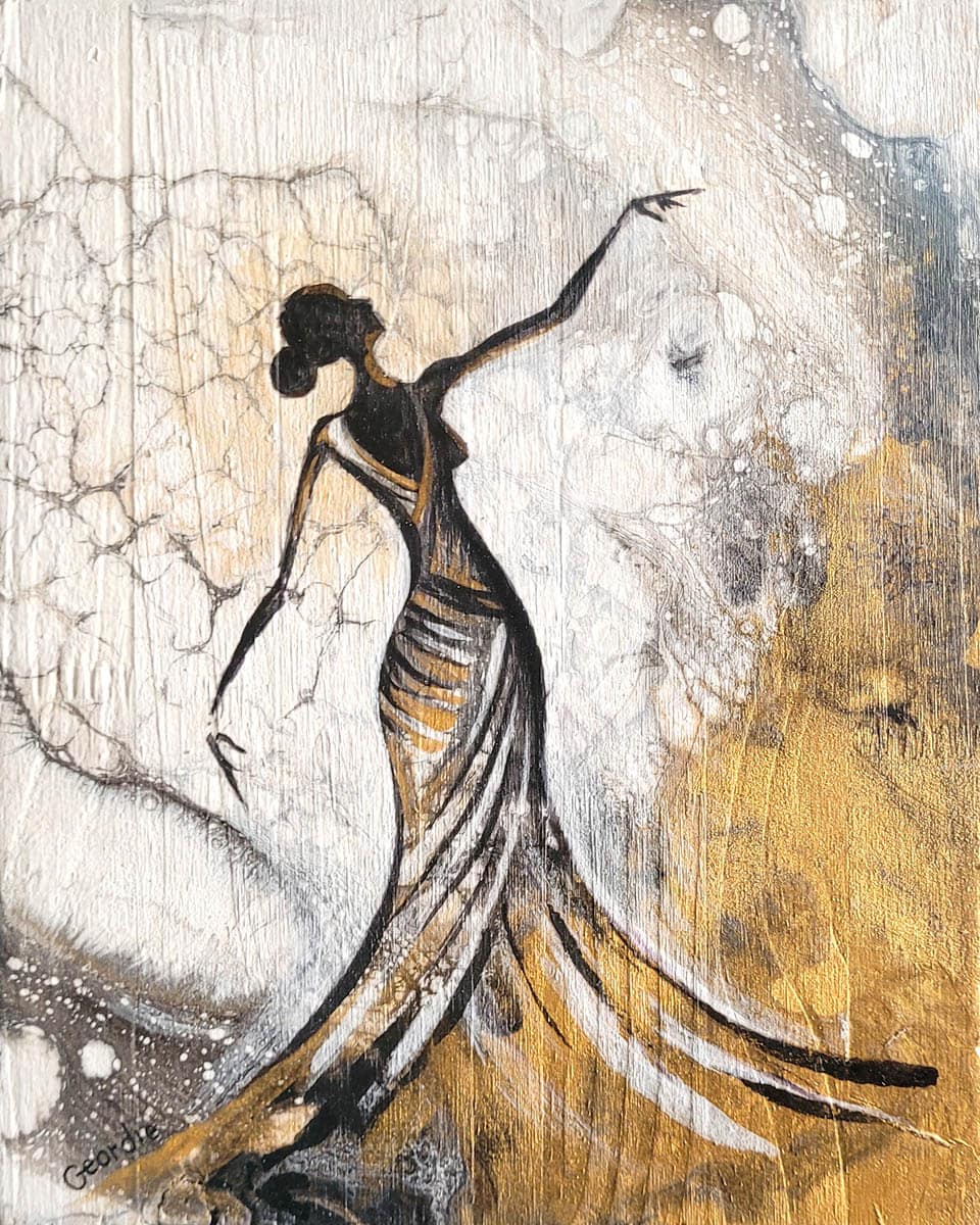 Ancien et nouveau A jamais rejoints Dans le même mouvement Qui jamais ne s’éloignent Jamais ne se rejoignent Dissemblables Indissociables Et pourtant Toujours dans le même mouvement De la vie De l’envie de se laisser griser De l’envie de retrouver Ce qui était et est encore Sans désaccord Technique mixte- 120cm x 60cm - Sur toile - 2018